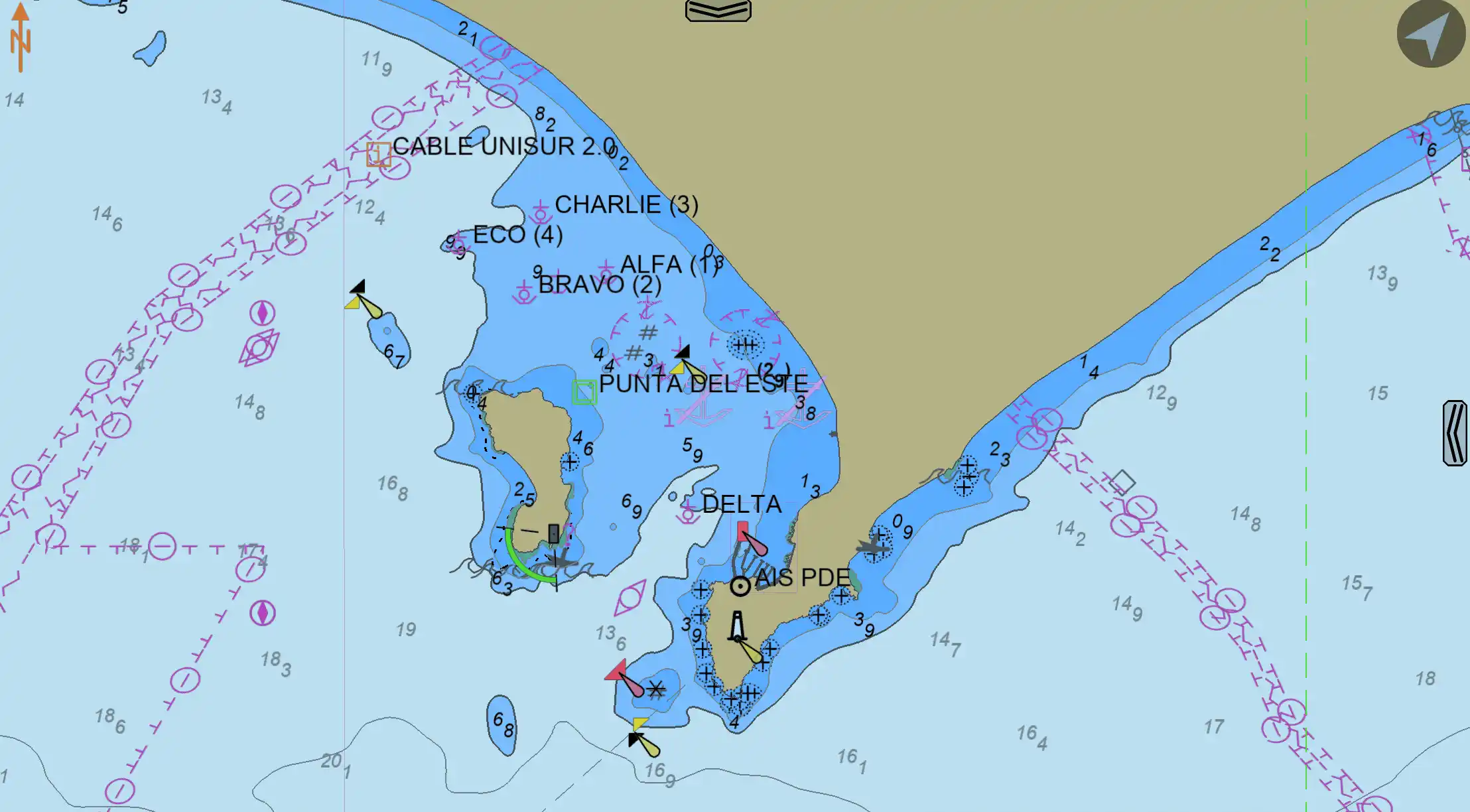 Boca Chica: En esta parte existe una sola posición de fondeo para los cruceros de hasta 180 m de eslora y 7.5 m de calado, a una distancia de 3 cables de la entrada al puerto deportivo.