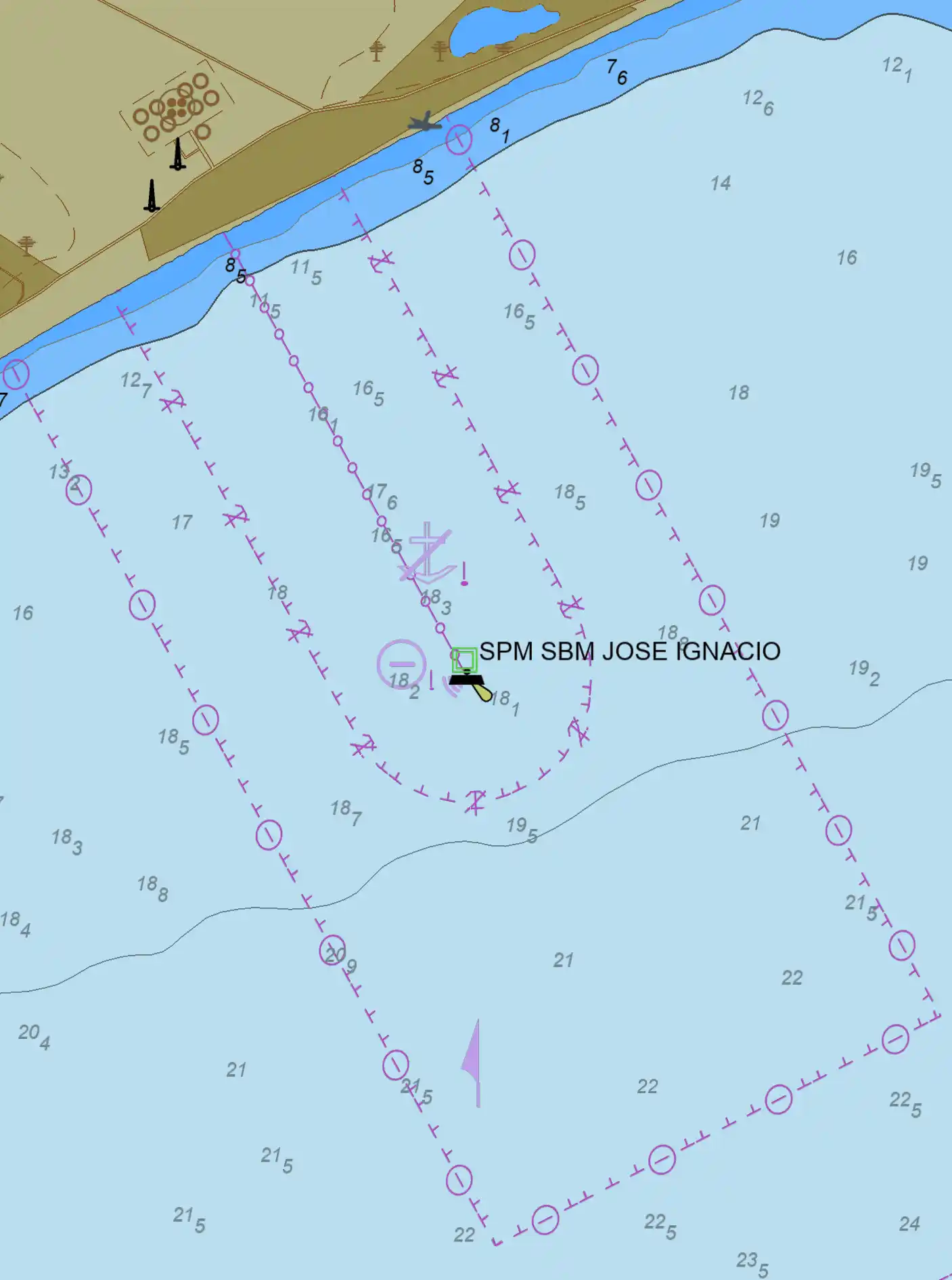 normal es de 17 m. El fondo marino es de arcilla y arena sin obstáculos,