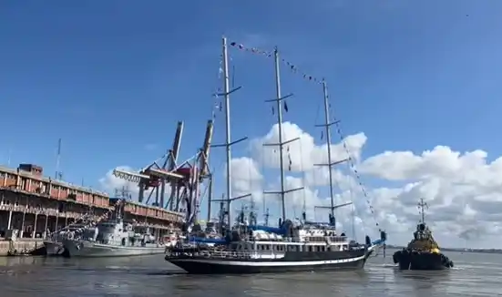 Primer buque con barcazas para mineral arriba a Nueva Palmira
